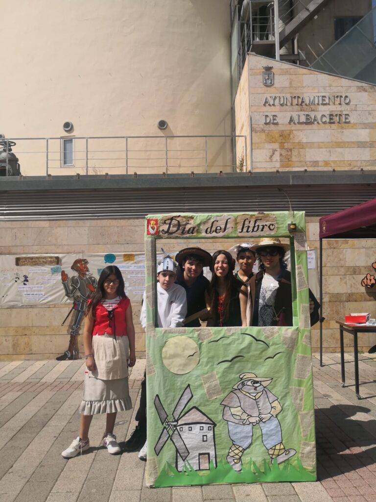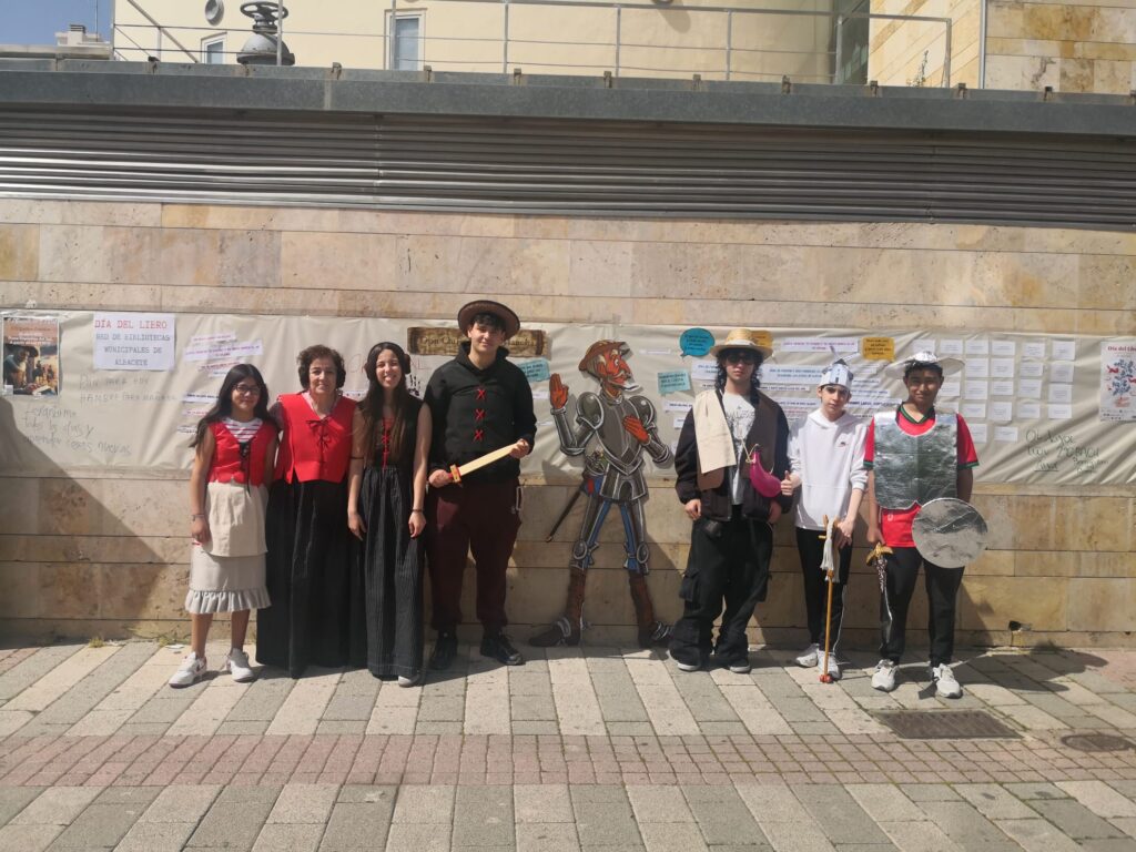 Los alumnos de 4º Diversificación se han sumado en la Plaza de los Depósitos a la lectura de «El Quijote» con motivo de la celebración del día del libro. Han leído la obra, han escrito refranes que aparecen en la novela y se han vestido a la usanza. Una mañana diferente
