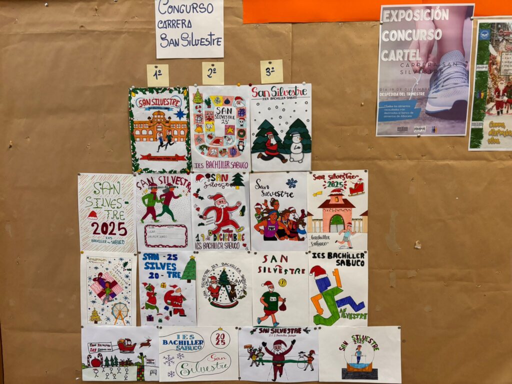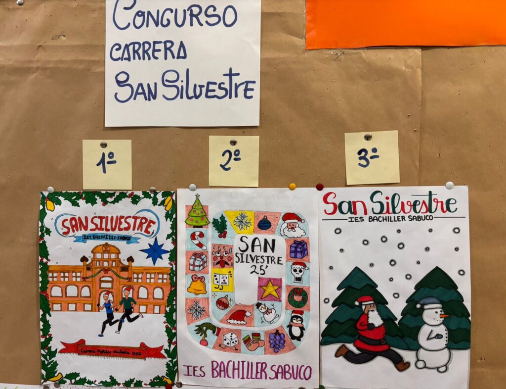 Ya tenemos nuestros ganadores para la pancarta que este año anunciará la carrera san silvestre del Sabuco. Los puedes ver expuestos en el tablón de la primera planta.