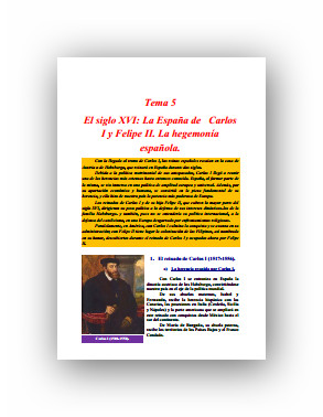 TEMA 5. LA ESPAÑA DEL SIGLO XVI: CARLOS I Y FELIPE II.